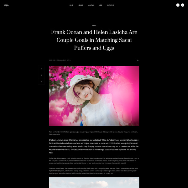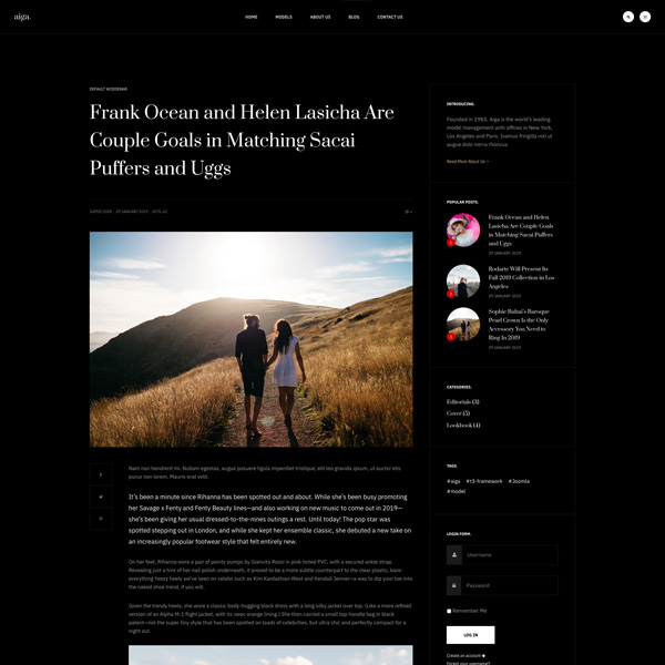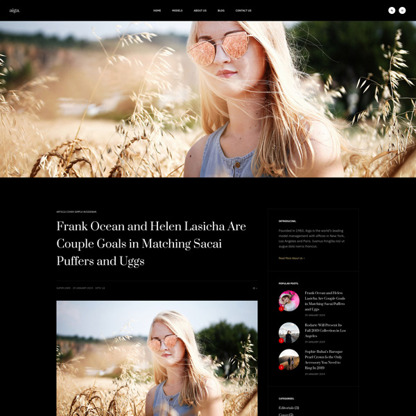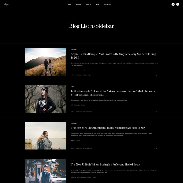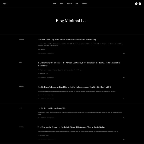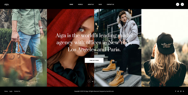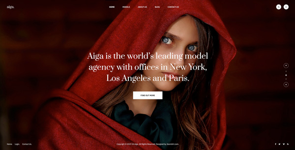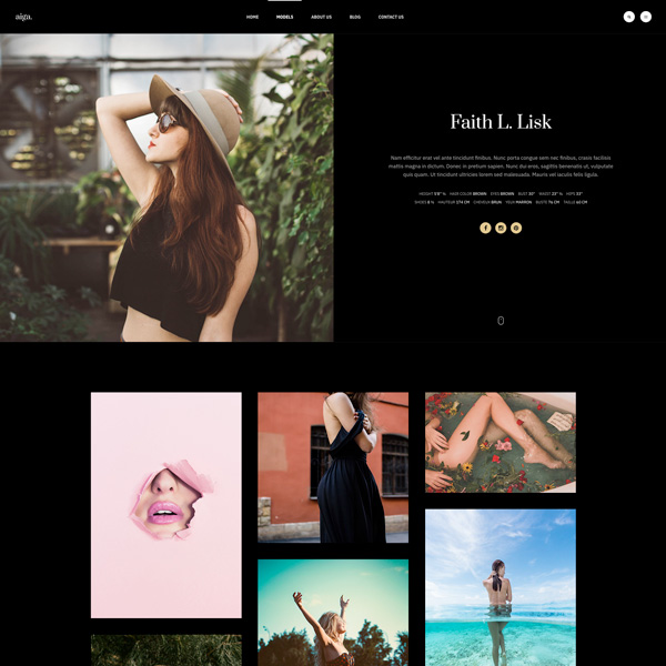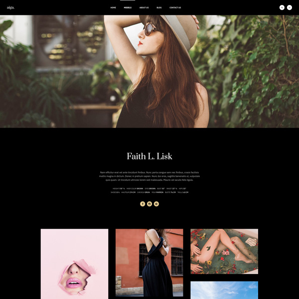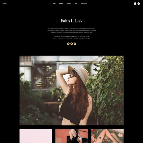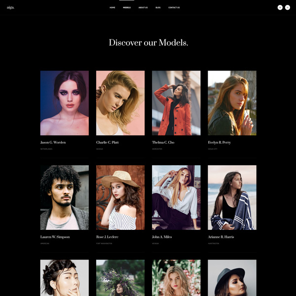 Founded in 1983, Aiga is the world’s leading model management with offices in New York, Los Angeles and Paris. Nam sodales purus ristique, pretium leo et, suscipit leo. Aliquam interdum feugiat congue dolo estibulum era dimentum quis urna non, dolor rhoncus pretium ipsum.